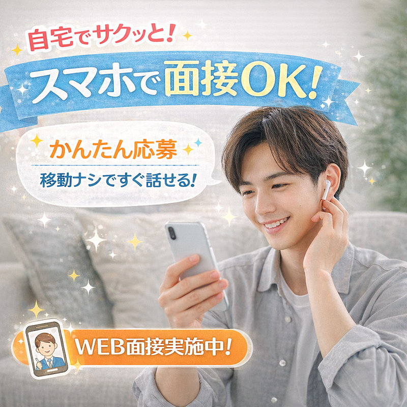 選考プロセス 1.ご応募⇒こちらからメール又はお電話にてご案内致します 2.ご面接(スマホ面接OK)⇒選考⇒職場見学⇒意思確認⇒採用⇒入社 【応募お問い合わせ】 フリーダイヤル:0120-45-8050 受付時間 平日 8:30~18:00 土祝 8:30~12:00 ※スマートフォンお持ちであればご自宅に居ながらご面接可能です(ご相談下さい) 【登録地】 光和工業株式会社(横浜事業所・WEB面接OK) 所在地:神奈川県横浜市西区高島2-12-6 崎陽軒横浜ジャスト1号館4階 担当者:採用担当 電話番号:0120458050 メールアドレス:kw-ykh@miyauchikousan-g.co.jp スマートフォンお持ちであれば自宅に居ながらのWEB面接が出来ます。
