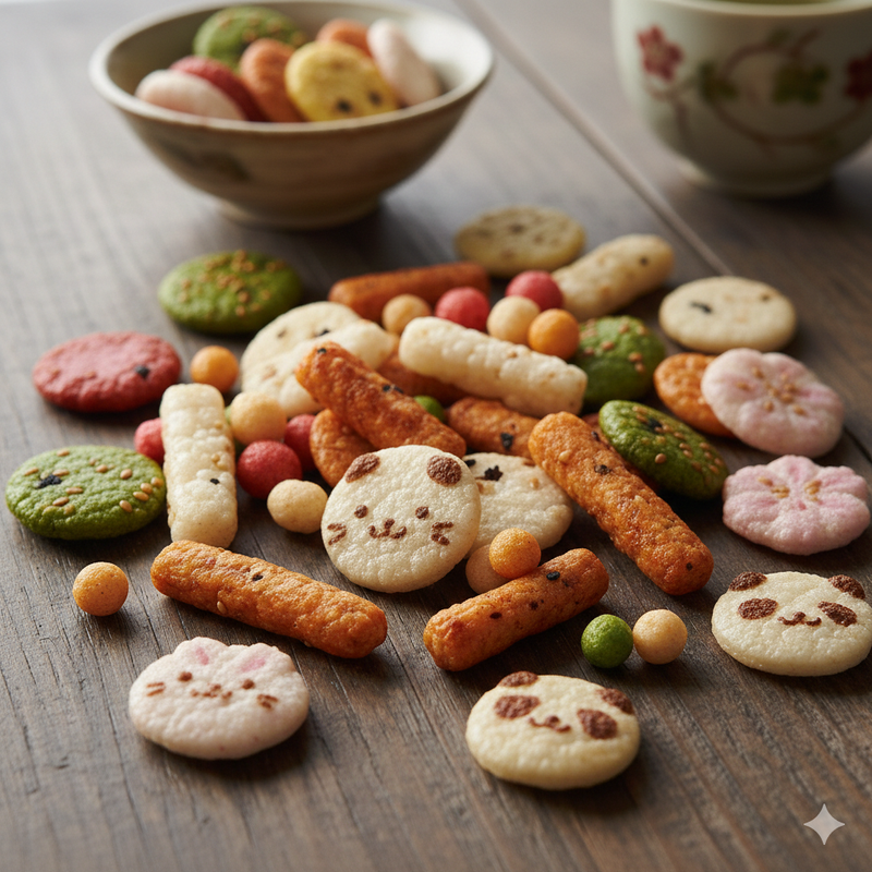 あられや餅など和菓子の品出し