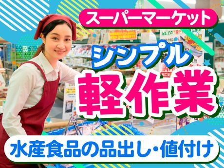 仕事内容 この求人のポイント  ̄ ̄ ̄ ̄ ̄ ̄ ̄ ̄ ̄ 【カンタン軽作業】未経験率90%超、老若男女活躍中 【選べる給与規定】嬉しい!日払いや週払いにも対応 【マイペース勤務】週2~5日勤務。WワークもOK! 【働きやすさ抜群】実働4~5h勤務!午後は自分時間に♪ 作業内容について  ̄ ̄ ̄ ̄ ̄ ̄ ̄ ̄ ̄ 24時間営業のスーパーマーケットで簡単な軽作業! 原則、接客はありません。コツコツ黙々ワークです♪ 【具体的には】 お魚の切り身やお刺身など、店内で加工された商品の 陳列をお任せします。台車を使って売り場まで運び、 値段シールを貼って並べるだけのシンプルなお仕事です。 お客さまが商品を取りやすいように配置を工夫したり、 値札を見やすい位置に変えたりなど、ちょっとしたコツは ありますがとってもカンタンな軽作業です♪ 軽作業デビュー歓迎  ̄ ̄ ̄ ̄ ̄ ̄ ̄ ̄ ̄ 業務内容はシンプルだからスグに慣れるはず♪ と言っても、多少は覚えることもあります。 雰囲気の良い環境づくりに力を入れているので 在籍スタッフによる丁寧なサポートのほかにも 現場担当によるフォローもあるので安心です!