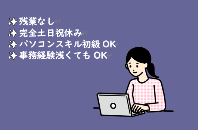 資格 PCへの入力ができる方 来客対応・電話対応に抵抗がない方 未経験者歓迎 既卒・第二新卒歓迎 フリーター歓迎 主婦・主夫歓迎 ブランクOK 学歴不問