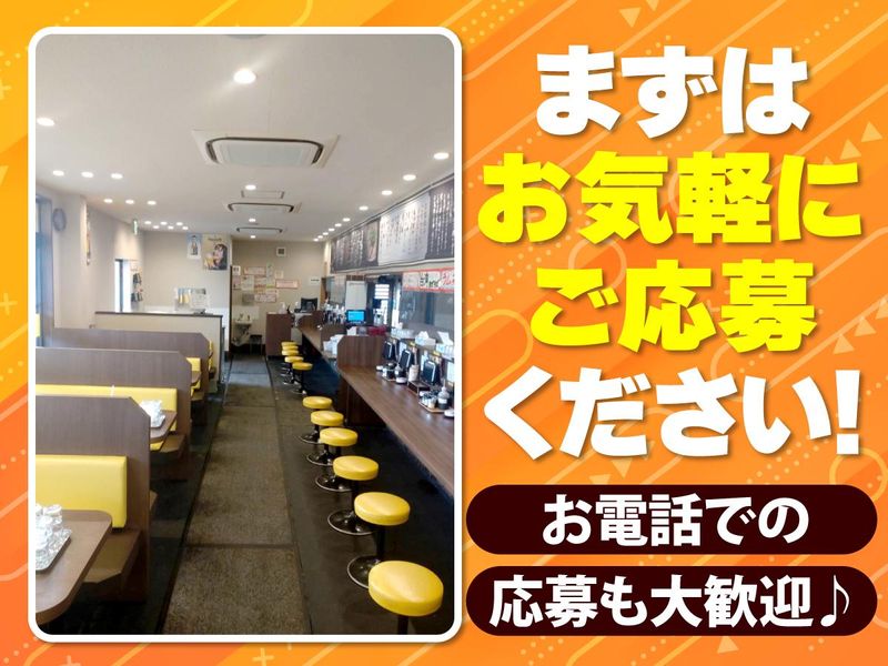 職場環境 定着率◎!!少人数でスグ馴染める♪困った時も皆が優しくフォローしてくれますよ~。お店の雰囲気もよくスタッフ皆仲良しです♪ 店内全席禁煙でご家族連れにも人気のラーメン店です。