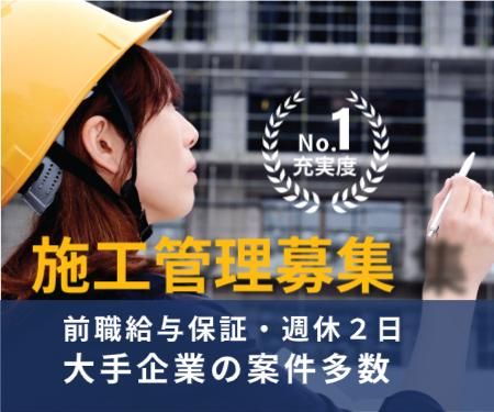 仕事内容 〇リニューアル工事における建築施工管理 マンションおよびオフィスビルにおける 建築工事(リニューアル)の施工管理業務を担当して頂きます。 業務詳細 ・受注した工事物件に対して、施工管理業務を担当して頂きます (S造・RC造・SRC造) 施工管理、工程管理、品質管理、安全管理、CADを使用した施工図の修正等 現場調査や施主、工事員との打合せもお任せします ・Word、Excelを使用した各種報告書の作成 ○仕事のポイント じっくり腰を据えて取り組めます! 日本を代表する大手ゼネコンや大手建設コンサルタント、設計事務所など、 クライアントは優良企業ばかり。 10年以上にわたり取引があるクライアントもおり、 プロジェクトも数年~10年単位の長期案件が中心。 将来の心配なく、地に足つけてキャリアを築いていけます。 ・手厚くフォローします! プロジェクトにはチームで参加するため、ベテラン先輩がしっかりサポート。 また、最低でも月1回は面談があり、 日常的に担当営業とコミュニケーションを取ることが可能。 現場の悩みや将来のキャリア、希望の条件(給与・残業の有無、勤務地)など 何でも相談でき、必要に応じてクライアントに交渉します。 ・国家資格も手に入ります! 「施工管理技士(建築・土木・電気工事・管工事)」「建築士」「測量士」 「電気工事士」「技術士・技術士補/RCCM」など、様々な資格が会社負担で取得可能。 一生役立つスキル・資格がゲットできますよ。
