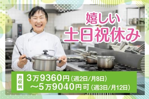 求めている人材 ♥未経験の方も大歓迎♪ (親切指導で安心スタート) ・家庭での調理経験等も活かせます ◎調理や調理補助経験者尚歓迎 ・パート・アルバイト経験も大歓迎 ・経験年数不問!ブランク等も大歓迎 ※飲食店、食堂、外食産業全般、社員食堂、給食、各種施設(学校・保育園・病院・福祉施設・ホテル等の宿泊施設・寮・他色々) ◆男女不問♪学歴・職歴不問♪ ◆主婦さん・女性多数活躍中♪ ◆20代・30代フリーターさん他活躍中! 40代・50代~63歳シニア女性活躍中 ◆平日10時半~15時! 週2~3日を有効活用 ※研修制度充実 (親切丁寧に指導します) <こんな方々にもオススメ> ・食べる事や調理の好きな方! ・ゆとりある勤務がしたい方 ・家事や育児と両立したい方 ・土・日・祝日はお休みしたい ・アットホームな職場は魅力