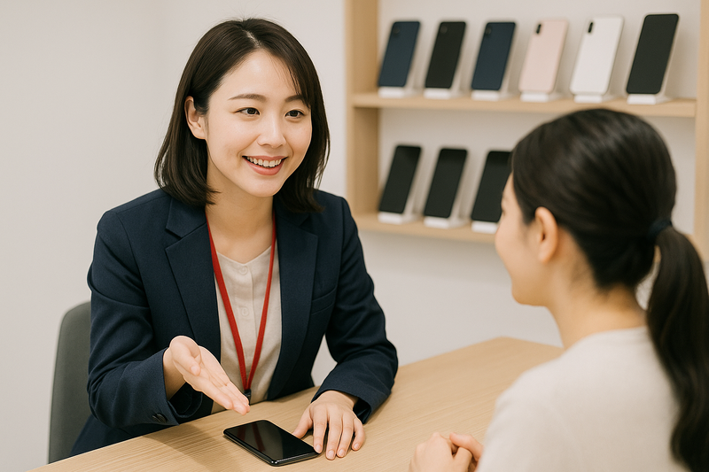 仕事内容 *―――――――――――――― ◆◇◆ 紹介予定派遣 ◆◇◆ ・高時給1300円スタート ・未経験者歓迎 ・正社員を目指せる! ――――――――――――――* 携帯ショップにて 携帯電話・スマートフォンのご案内や 各種サービスのご提案をお任せします! \こんなお仕事をお任せします/ ■ご来店されたお客様の受付対応 ■スマートフォンやタブレットの 機種・料金プランのご説明 ■契約・機種変更などの各種手続き ■店内ディスプレイやPOPの作成 ■簡単な事務作業(データ入力など) \ここがポイント/ ✅ 充実した研修制度あり ビジネスマナーから商品知識、 接客方法まで丁寧にサポートします。 ✅ 未経験者多数活躍中 元飲食・アパレルなど、 異業種からの転職者が多数在籍! ✅ 紹介予定派遣 派遣勤務6ヶ月後に 派遣先で正社員雇用! 正社員雇用後も リーダー、マネージャー職などの キャリアアップも可能♪ ↓↓↓↓↓↓↓↓↓↓↓↓ 嬉しい特典あり♪ ・:*。・:*:・。:・。・:*:・。:・。・:*:・。: ★入社お祝いキャンペーン!  ̄ ̄ ̄ ̄ ̄ ̄ ̄ ̄ ̄ ̄ ̄ ̄ ̄ 入社して3ヶ月勤続後に 【 3万円支給 】あり♪ ★友人紹介キャンペーン!  ̄ ̄ ̄ ̄ ̄ ̄ ̄ ̄ ̄ ̄ ̄ ̄ ̄ 紹介された入社者が 2ヶ月勤続で 【 紹介者に1万円支給 】あり! ・:*。・:*:・。:・。・:*:・。:・。・:*:・。: ✅週払い相談OK(規定あり) 「急な出費でお財布ピンチ!」 そんな方もご安心を! お気軽にご相談ください! ✅即日勤務OK! 今すぐ働きたい方も しっかりサポートいたします! ご応募お待ちしております。