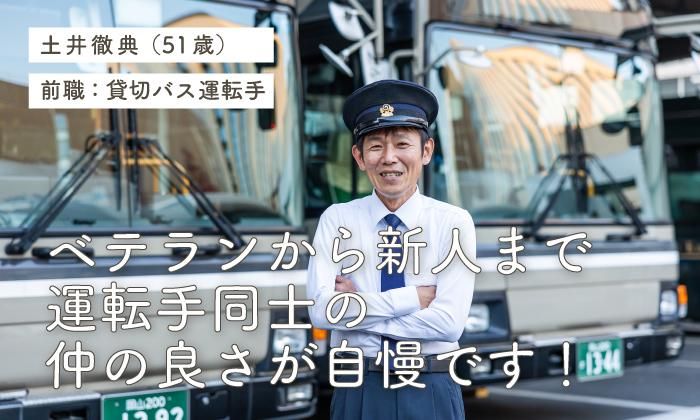 求めている人材 ・大型免許 ・大型自動車の運転経験がある方 ・バス未経験者も歓迎です。 ・20代・30代・40代・50代の若手から中高年・シニアまで活躍中 <こんな転職者が活躍中> 前職が8トントラックドライバー、ルート配送ドライバー、 宅配運転手、配送ドライバーやマイクロバスなどの ドライバー・運転手の運転経験者が活かせます。 ・40代以上も応募可 ・50代以上も応募可 ・ミドルシニア・50代活躍中・60代活躍中 ・70歳まで現役で活躍可能