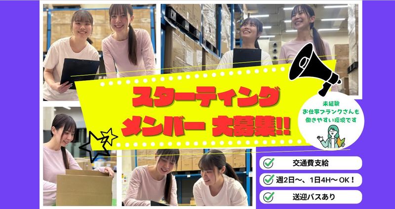 無料送迎バス完備!グッズなどの物流倉庫の軽作業。週2日~OK