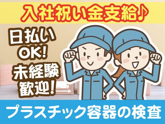 重量物なし!夜勤で稼げる/プラスチック容器の目視検査 土日休み/日払いOK/入社祝い金有