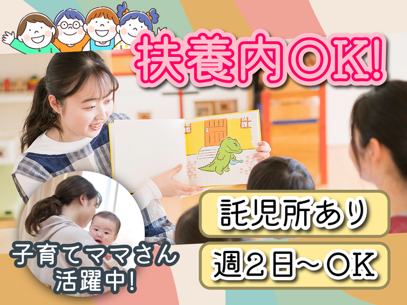 仕事内容 / ⏩【新着】日祝休み!扶養内勤務OK! ⏩託児所あり!子育てとの両立を応援! \ 「幼保連携型認定こども園 三葉幼稚園」 でのパート保育士スタッフ募集! =================== 《主な仕事内容》 *幼稚園における教育・保育業務全般 *保育時間外の預かり保育の実施 *乳幼児(0歳児〜5歳児)の保育業務全般 ✅子育てママさんが多数活躍する職場! =================== 1日4h~、週2日~勤務OK! 「扶養控除内で」「フルタイムで」など あなたのライフスタイルに合わせて 理想の働き方へ柔軟に調整可能です♪ また、登園併設の一時預かり事業の 利用も可能なので、 子育て世代の方にもオススメです✨ ✅「遊びから学ぶ」という教育を実践! =================== 子どもたちには、体力・能力・心力を使い 心ゆくまで遊んでもらう方針です。 季節のあそびや食育、制作活動などを通し より一層、子どもたちの成長と感動を 身近に感じられる環境です✨ ⏩適性に応じて配属部門を決定します。 ※保育(8時~17時)、幼稚園(8時~17時)、 あずかり保育(7時~19時)の計3部門
