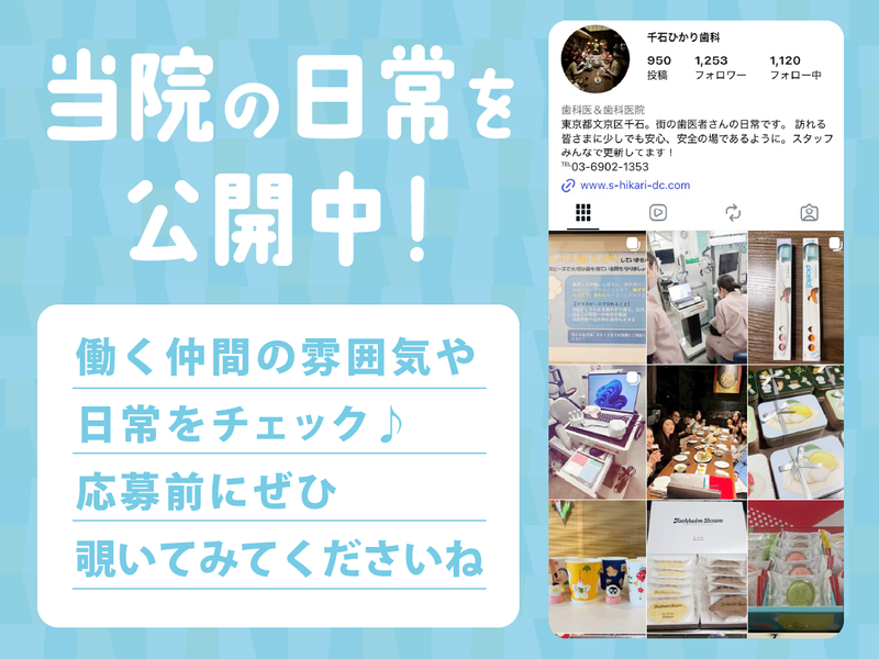 仕事内容 ◇週1日~OK▶シフト自由◎ ◇歯科衛生士へのキャリアアップ可能 └学費を当院がバックアップします✨ ‥‥‥‥‥‥‥‥‥‥‥‥‥‥‥‥‥‥‥ 患者さまに安心して治療を 受けていただくためのサポート業務♪ ‥‥‥‥‥‥‥‥‥‥‥‥‥‥‥‥‥‥‥ ▼【具体的な仕事内容】 ・器具の洗浄・滅菌・準備 ・院内清掃・消毒などのクリーン業務 ・受付や簡単なご案内 ・診療補助(ドクター・衛生士のサポート) ⏩授業や育児の合間に、 週1日だけ働いてみませんか? 空時間を有効活用したい方におすすめ! \未経験の方は/ まずは器具の準備や清掃など、 簡単な作業から少しずつ覚えていけます。 焦らずじっくり業務を覚えられるので、 自分のペースで成長できますよ♪ \学生さんは/ 歯科大学、歯科衛生士学校に通う方は、 実習前に現場経験を積むチャンス。 \経験がある方は/ スキルを活かし即戦力として活躍可能! ⏩さらなるキャリアアップも可能♪ 奨学金制度があり、働きながら 歯科衛生士を目指すこともできるんです✨ 「将来に向けて資格を取っておきたい」 …そんな方も大歓迎! 学費は当院がバックアップするので、 勉強に集中できる環境です◎ ‥‥‥‥‥‥‥‥‥‥‥‥‥‥‥‥‥‥‥ |◤ 当院について ◢|  ̄ ̄ ̄ ̄ ̄ ̄ ̄ ̄ ̄ ̄ ✅穏やかな患者さまが多い職場 患者さま一人ひとりに寄り添う 丁寧な診療を大切に、地域の方に愛される 「町の歯医者さん」を目指しています。 文京区という土地柄もあり、 院内はとても落ち着いた雰囲気。 小さなお子様からご高齢の方まで、 ご家族ぐるみで通ってくださる方も多く、 安心して働ける環境です。 「笑顔で患者さまを迎えること」 を大切にしながら、 一緒に温かい医院づくりをしてくれる 仲間をお待ちしています!! ‥‥‥‥‥‥‥‥‥‥‥‥‥‥‥‥‥‥‥‥ ■【スタッフ構成】 幅広い年齢層のスタッフが活躍中です! 〈内訳〉 ・歯科助手:5名 ・歯科衛生士:4名 ・歯科医師:2名 ■【SNS】 Instagramで日常を発信しています! https://www.instagram.com/s_hikari_dc/ ‥‥‥‥‥‥‥‥‥‥‥‥‥‥‥‥‥‥‥‥