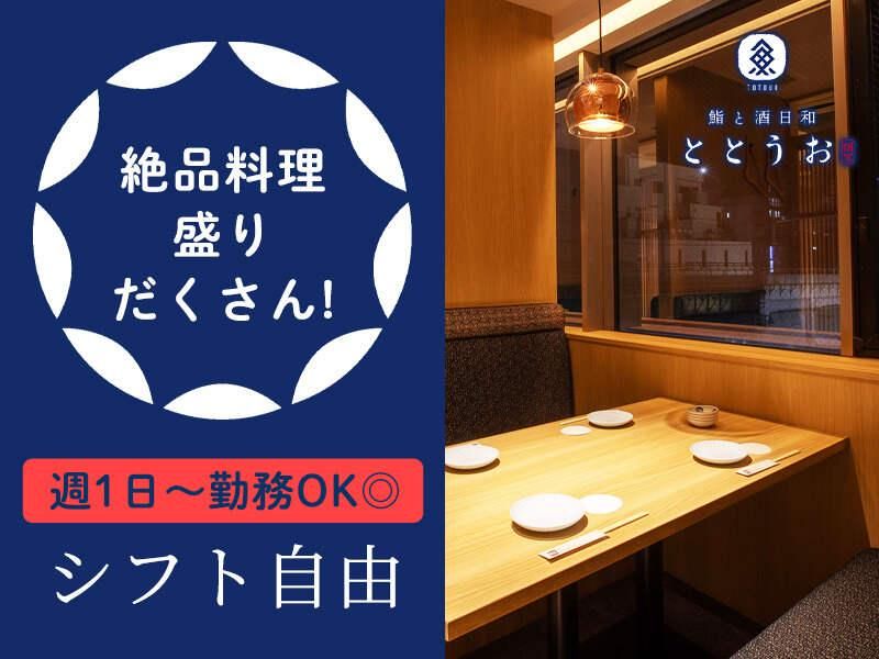 職場環境 ととうおは、新鮮な魚介と厳選された 日本酒を提供する全席個室の和食ダイニングです! 喫煙所:なし(敷地内全て禁煙)