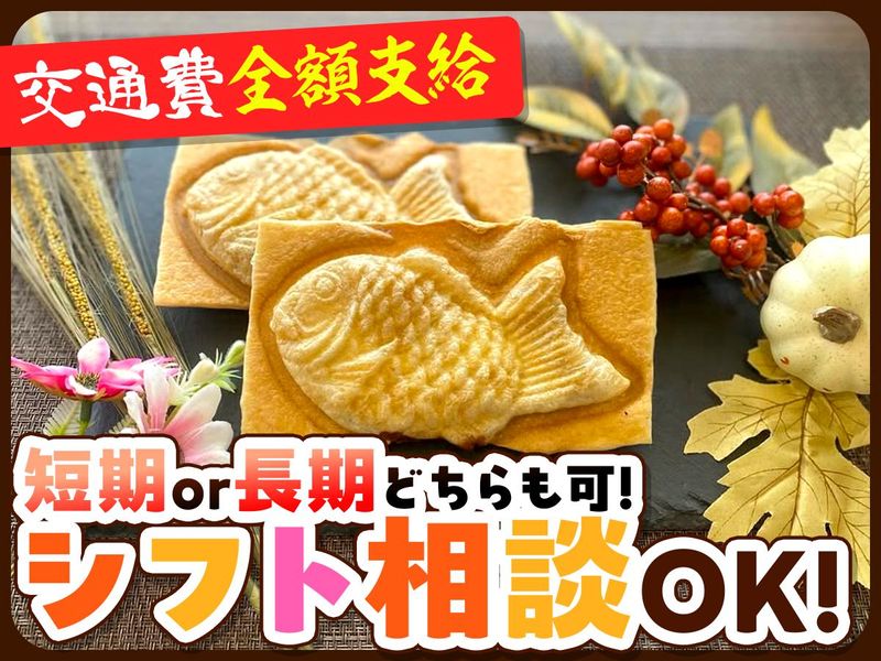 求めている人材 \40代、50代のパートさん活躍中!/ ●未経験歓迎 飲食バイトが初めての方にも 丁寧にお教えします! 《こんな方にもオススメ》 ◎フルタイムで安定収入を確保したい方 ◎1からじっくり飲食のオシゴトがしたい方 ◎自分のペースでシフトを決めたい方 ◎たい焼きが大好きな方