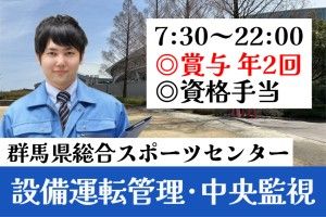 仕事内容 <このお仕事のおすすめポイント> ◎ON/OFFを切替やすい日数少なめ → 月14日~16日勤務 ◎残業なしでワークライフバランスばっちり プライベートと両立しやすい! ◎安定の社保完備 ◎ボーナス・賞与あり ◎資格手当あり ◎社員登用あり ◎資格取得支援あり ◎経験者歓迎 <具体的なお仕事内容は?> 群馬県総合スポーツセンター内 (ぐんまアリーナ・ぐんま武道館) にある防災センターにて、 機器・設備等の保守や運転管理等を行います ■防災センター中央監視業務 ・防災監視盤制御 ・電力空調版監視制御 ・異常時の応急対応 ■防災機器の保守点検 ・非常時の対応 ・日常点検保守報告 ・日報作成 ■電力・空調その他設備の保守点検 ・修理、清掃、調整 など 【職場環境】 ・4名在籍(1日2名 シフト対応) ハローワークでお仕事を探していらっしゃる方や 資格や経験を活かして働きたい方など 私たちと一緒にお仕事しませんか? ◎ご応募お待ちしております◎ ━━━━━━━━━━━━━━━━━ ▼ 他のお仕事情報はコチラ▼ https://fun2job.com/ スマホからは URLを長押し選択、「リンクを開く」で ご覧ください ━━━━━━━━━━━━━━━━━ 【こんな方を求めます】 ・資格や経験を活かしてお仕事したい方 ・下記いずれかの資格をお持ちの方 (2種電気工事士 or 2級ボイラー以上 or 3種電気主任技術者以上) ・設備管理業務経験者 ・PC基本操作(入力程度)ができる方 ・チームワークを大切にする方 ・ブランクOK ・フリーター歓迎 ・Uターン歓迎/Iターン歓迎 ・経験者・有資格者歓迎 ・ミドル活躍中 ━━━━━━━━━━━━━━━━━ ■気になる方下記ホームページをチェック https://kbix.co.jp/ ━━━━━━━━━━━━━━━━━ 採用に関するお問い合わせは 下記までお気軽にご連絡ください。 ケービックス 株式会社 お仕事情報問合せ・応募専用フリーダイヤル TEL:0120-76-3387 (群馬本社事業 人材担当) ━━━━━━━━━━━━━━━━━ [醍醐味] 資格と経験を活かして働く! ** 急募・1名募集 ** [こんな人が活躍] ・20代、30代、40代、50代の男性スタッフ活躍中! ・経験者活躍中 ・ミドル活躍中 ◎40代以上も応募可 ◎50代以上も応募可
