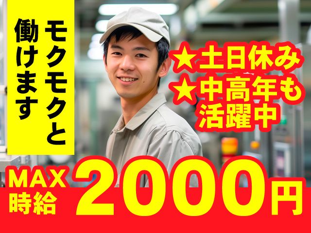 最高時給2000円/製造スタッフ/未経験OK/中高年活躍中/土日休み/完全週休2日/週払い・前払い可