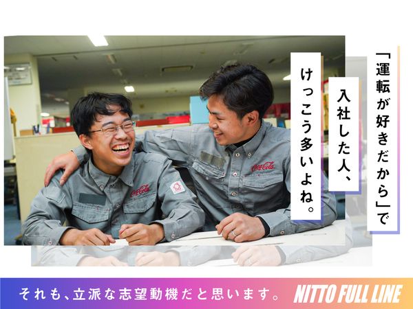 仕事内容 「もう、夜勤で体を壊したくない」 「家族と夕飯を食べたい」という方へ。  ̄ ̄ ̄ ̄ ̄ ̄ ̄ ̄ ̄ ̄ ̄ ̄ ̄ ̄ ̄ ̄ ̄ ̄ ̄ ̄ ̄ ̄ ̄ ⏩深夜配送や無理な交代制は卒業です。 誰もが知る「コカ・コーラ」を届ける 安定感抜群の仕事に挑戦しませんか? 営業ノルマはなく、自分のペースで コツコツと進められるのが魅力です✨ ・。'.・。'.・。'.・。'.・。'.・。'.・。 【仕事内容】 決められたエリアを回るルート配送✨ 担当する自動販売機を2t~3tトラックで回り 商品の補充や清掃を行うお仕事です。 固定ルートなので道も覚えやすく、 未経験の方でも安心してスタート✅ 大手グループならではの教育体制で、 あなたのプロデビューを支援いたします⏰ 【具体的なお仕事の流れ】 ⏩専用の2t~3t車を運転します。 ⏩1日20件ほど自販機を巡回。 ⏩商品の補充、ラインナップの変更。 ⏩売上金の回収や空き缶の回収。 ⏩季節に合わせたポスターの掲示。 ✅台車を使うので、体への負担も 最小限に抑えながら働けます⭐ ・。'.・。'.・。'.・。'.・。'.・。'.・。 【1日の流れ】 08:00 ⏩ 出勤・点呼・荷積み✅ 09:00 ⏩ 担当エリアへ出発! 12:00 ⏩ 休憩は自分の裁量にお任せ⏰ 合間にこまめに休んだり、 一気に回って後でまとめて取るのもOK!✅ 13:00 ⏩ 午後の配送をリスタート! 19:00 ⏩ 帰社・売上精算・翌日準備。 平均2~3hの残業で収入UP 繁忙期は忙しいですが稼げます!⭐ ・。'.・。'.・。'.・。'.・。'.・。'.・。 【将来も安心のキャリアステップ】 現場で経験を積んだ後は、チームを まとめる「リーダー」や拠点を管理する 「所長」への道も用意されています✨ 年功序列ではなく、あなたの頑張りを 正当に評価して給与に反映します⭐ 管理職なら年収500万円以上も可能✅ ・。'.・。'.・。'.・。'.・。'.・。'.・。 【先輩インタビュー(入社3年目)】 前職は工場の交代制勤務でした。 夜勤続きで体力的にも厳しく、 子供の寝顔しか見れない日々でした。✨ 今は「日勤のみ」の配送なので、 夜は家族と家で過ごせています。 残業した分は収入が増えるので、 家族を養う自信もつきました⏰ ・。'.・。'.・。'.・。'.・。'.・。'.・。 【職場環境】 車通勤OK、バイク通勤OKで通勤ラクラク✨ 20代・30代・40代が中心の明るい職場⭐ 制服貸与ありで自分らしい格好で出勤可能✅ 安全性優良事業所の認定も受けています⏰ ・。'.・。'.・。'.・。'.・。'.・。'.・。