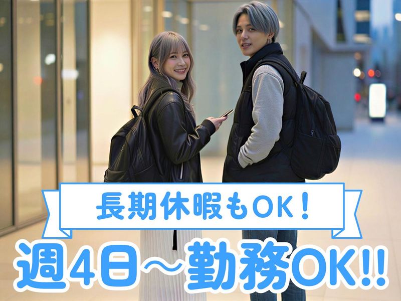 選考プロセス 少しでも興味をお持ちいただけましたら、お気軽にご応募ください。応募完了後、当社から面接日の設定と選考についてメールでご案内いたします。 ※係名:1278427AWWK0206 【応募後の流れ】 [1]ネットまたはお電話にてご応募 [2]面接(WEB面接も対応可) [3]採用 ※面接当日、履歴書は不要。服装も普段着で構いませんのでお気軽にご参加ください。合否の結果は面接後、3営業日以内にご連絡いたします。 ※面接時、端末操作が可能かどうかのテストを実施します。 【スピード選考・スピード採用実施中】 リモート面接OK!友達と一緒にご応募も大歓迎!