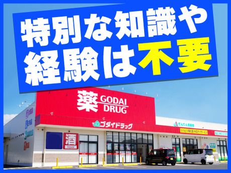 仕事内容 ゴダイドラッグでのレジ接客・品出しなどのお仕事です! 幅広い年齢層のスタッフが在籍していますので、安心して働けます! 特別な知識や経験は問いません! ネイルOK!ピアスOK!髪色は自由! お化粧品が好き!接客が好き!その想いだけでOK! 【主な仕事内容】 (1)レジ業務 (2)商品補充・品出し業務 (3)売場のご案内や簡単な接客業務 (4)商品の受注発注・在庫管理 (※)調剤薬局併設店舗の場合は、調剤補助業務が伴います。 面接時に調剤補助に関してヒアリングいたします。 □■□登録販売者資格(薬種商)の手当あり!□■□ 登録販売者資格(薬種商)をお持ちの場合は 資格手当が支給されますッ!! ※管理者要件を満たした方:+100円 法定研修期間中の場合 :+40円 パート・アルバイトさんも社内研修を受け 資格取得のバックアップをしますッ! □■□ゴダイドラッグの魅力ポイント□■□ ・髪色、ネイル、ピアスが自由!(一部部門を除く) ・有給休暇もあり、取得できます! ・シフトもプライベートに合わせて調整可! ・バイク/車通勤もOK!(規定に基づき交通費を支給) ・従業員割引制度が充実!(詳細下記) □■□お得にお買い物!従業員特別購入制度!□■□ 医薬品・化粧品・日用品などの 当社で取り扱いしている商品を購入時は 従業員割引&ゴダイポイントの倍率UPで お得にご購入していただけます! 医薬品:一般用医薬品全般 化粧品:エリクシール・マキアージュ・メイベリン・プリマヴィスタなど 日用品:ボディーソープ・シャンプー・衣料用洗剤・住居用洗剤など ※一部対象外商品あり