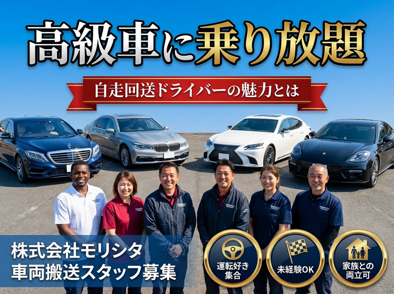 仕事内容 株式会社モリシタ 「リアルな現場の声」 ~多様な社員が語る、 それぞれの働き方スタイル~ 【入社2年目・田中翔太さん(27歳)】 車好きから始まった「とある1日」 朝6:30 高石市の1Kアパートにて 目覚ましより早く目が覚める。 今日運ぶ車のことを考えながら コーヒーを淹れる。 「今日はどんな車に会えるかな」って、 まるで新しい友達に会いに行くような気持ち。 天気予報をチェックして、 雨なら特に慎重運転を心がける 準備をする。 7:45 出社・同僚との何気ない会話 事務所に着くと、先輩の佐藤さんが 既に車両点検をしている。 「田中くん、今日は外車多いで〜、 気ぃ引き締めていこな」 なんて声をかけてもらう。 この軽い雑談が、 一日の緊張をほぐしてくれる。 9:00 BMW X5との出会い 今日最初の車両は高級外車BMW X5。 正直、2年経った今も緊張する。 それは怖いんじゃなくて、 「この車を大切に運びたい」という 責任感からくる緊張。 エンジンをかけた時の音、 シートに座った時の感触、すべてが学び。 普通に生活していたら 絶対に運転できない車に乗れるって、 本当にラッキーだと思う。 12:00 昼食・同僚との車談義 近くの定食屋で先輩と昼食。 「今日はどんな車だった?」が 定番の会話。 佐藤さんは「昨日、初代NSX運んだんや! もう興奮して夜眠れへんかった」 なんて話してくれる。 車好き同士だから、 仕事の話が趣味の話にもなる。 14:00 午後は軽自動車・違いを楽しむ 午後は軽自動車の搬送。 BMW X5から軽自動車に乗り換えると、 「こんなに違うのか!」って毎回驚く。 車種によって運転感覚が全然違うのが 面白くて、「今度はどんな車かな?」って 期待感が止まらない。 17:30 帰宅・ゲームでリフレッシュ 家に帰ったらPS5でレーシングゲーム。 仕事で実際に運転した車が ゲームに出てくると、 「あ、この車知ってる! 実際はもっと重量感があるんだよな」 なんて思いながらプレイ。 リアルとゲームの違いを楽しめるのも、 この仕事ならでは。 田中さんのスタイル: 「車との出会いを大切にする、成長実感型」 【入社5年目・佐藤美香さん(34歳)】 女性ドライバーが見つけた 「安定とやりがいのバランス」 朝7:00 3歳の娘と朝の時間 「ママ、お仕事がんばって!」 娘の元気な声で一日がスタート。 以前のコールセンターの仕事は 夜遅くまでだったけど、 モリシタは17時には帰れるから、 娘との時間が確実に取れる。 これが一番の決め手だった。 8:00 出社・チームでのコミュニケーション 「美香さん、今日は軽めの車両中心やから 安心して」と森下社長が声をかけてくれる。 男性ばかりの職場だけど、 変な気を遣われることもなく、 一人のドライバーとして接してもらえる。 9:30 プリウスで初搬送・丁寧さが武器 今日最初はプリウス。 私の強みは「丁寧さ」だと思っている。 男性陣のようにパワフルな運転は できないけど、細かい部分への気配りは 負けない自信がある。 車内の清掃チェック、 外装の小さな傷の確認、 お客様への丁寧な対応。 11:00 お客様とのやり取り 搬送先で「女性のドライバーさんは 珍しいですね」と言われることもある。 でも、車両の状態説明や 書類の受け渡しでは、 「丁寧で安心できる」と 評価してもらえることが多い。 これは前職の接客経験が 活かされていると思う。 12:30 昼食・ワークライフバランスの実感 「今日は保育園のお迎えがあるから、 定時で帰らせてもらいます」と伝える。 「もちろん!子どもが一番やからな」と 言ってもらえる環境。 前の職場では言い出しにくかった こういうことが、自然に言える。 18:00 保育園お迎え・娘との時間 「ママ、今日はどんなお車だった?」 娘の質問が可愛い。 「今日は白いプリウスと、 黄色い軽自動車だったよ」と答えると、 「次は何色かな?」と目を輝かせる。 仕事の話が家族の会話になる、温かい日常。 佐藤さんのスタイル: 「丁寧さと家庭の両立を重視する、 バランス調整型」 【入社10年目・山田健一さん(42歳)】 ベテランが語る 「この仕事の本当の面白さ」 朝6:00 経験者ならではの準備 10年の経験で身についた朝のルーティン。 天気、道路状況、搬送車両の事前チェック。 「今日は雨やから、ブレーキの効きを 特に意識しよう」など、 その日に合わせた運転方針を 頭の中で整理する。 8:15 後輩指導・知識の共有 新人の鈴木くんと一緒に出発準備。 「この車、ブレーキが敏感やから 最初はゆっくり踏んでみ」とアドバイス。 10年間で蓄積した車種ごとの特徴を 後輩に伝えるのも大切な仕事。 教えることで、自分の知識も整理される。 10:00 レクサス搬送・プロとしてのプライド 今日はレクサスLS。 高級車になればなるほど、責任も大きくなる。 でも、それがプロとしての やりがいでもある。 「10年前は緊張で汗だくだったけど、 今は車との対話を楽しめる」 そんな心境の変化を感じる。 12:00 昼食・業界話と人生相談 「山田さん、実は転職考えてるんです...」 後輩から相談を受ける。 10年いると、いろ