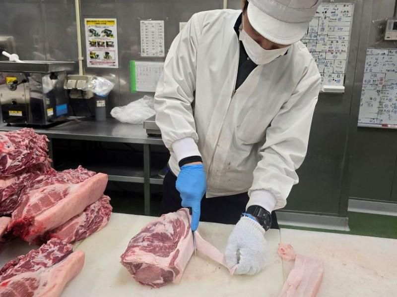 豚肉専門卸売会社での食肉加工作業(脱骨・整形・スライスなど)