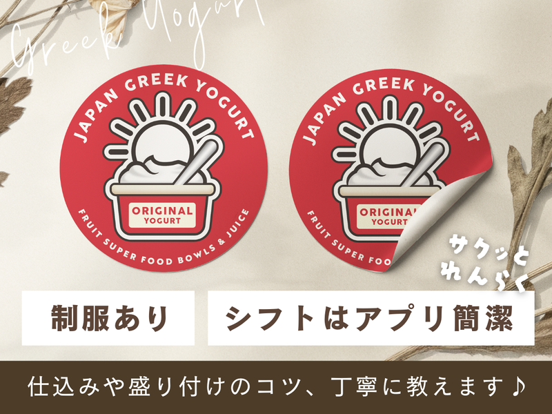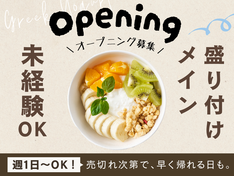 仕事内容 ✨ オープニングスタッフ募集 ✨ ✧ 大森駅すぐの新店舗でお仕事! ✧ 週1日~!売り切れ次第早上りOK ✧ 自分のペースで裁量大きく働けます♪ ⚘…⚘…⚘…⚘…⚘…⚘…⚘…⚘…⚘…⚘…⚘…⚘…⚘ \ 2025年12月23日 NEW OPEN / グリークヨーグルト専門店 「天 ten~JAPAN GREEK YOGURT」 でオープニングスタッフを大募集! ▼お仕事はとってもシンプル♪ ◎レジ対応 ◎自家製ヨーグルトの仕込み ◎簡単な盛り付け ◎商品のお渡し ◎店内清掃 など 【1日50食限定】の販売で、 売り切れたらその日の営業は終了です! 状況によって15:00に上がれることもあり、 プライベートとの両立もバッチリです◎ ⏩仕事内容詳細 ━v━━━━━━╯ 盛り付けは、ヨーグルトの上に シリアルやフルーツを飾るなどの シンプルな業務です! 視覚的にも楽しめるような ”可愛い”商品を作っていきましょう。 ⚘…⚘…⚘…⚘…⚘…⚘…⚘…⚘…⚘…⚘…⚘…⚘…⚘ 研修では、1日のルーティンや 商品の仕込みなどを丁寧に教えます。 食品を扱うため、衛生管理は徹底! それができる方であれば、 販売経験や特別なスキルは不要です! 基本的にはワンオペになりますが、 お店は大きくないので お客様対応も落ち着いてできる環境! 「自分のペースで進めたい」 というタイプの方にはピッタリですよ✨