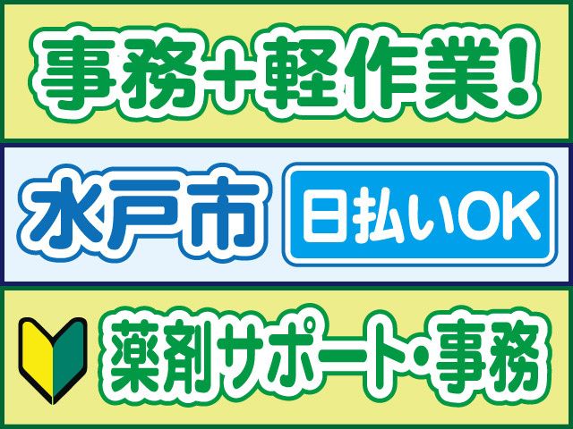水戸市宮町/履歴書不要・日払いOK 病院での薬剤サポート・事務 未経験OK!商品知識は入職後でOK!