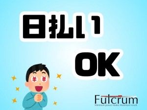 選考手順 1.応募 応募の際に、『ホームページを見た』と伝えて頂けると スムーズに進みます。 ↓ 2.面談(ご希望や条件をご相談下さい!) 面談場所は、【横浜駅から徒歩8分ほどのオフィスです。】 ↓ 3.お仕事紹介 フルクラムは、ほかにも静岡・神奈川・東京エリアに お仕事多数なので、あなたに合ったお仕事ご紹介します。 ↓ 4.就業決定! お友達紹介キャンペーンもあります! 面接地 横浜市西区北幸2-10-33 MIテラス横浜西口5F JR横浜駅西口から徒歩約8分 ※同じビルの1Fに郵便局があります web面接や書類選考での対応も可能です。
