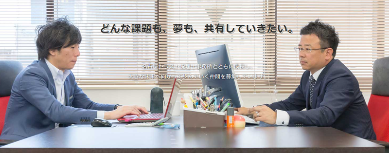 選考プロセス 【採用の流れ】 ①エントリー ②折り返しご連絡いたします。 ③書類選考 ④面接 ⑤内定 勤務開始ご希望日ご相談ください。 まずはお気軽にご応募お待ちしております! 【当社HP】 https://nagoya-trust.com