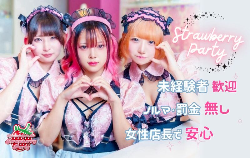 仕事内容 🌸🌸2026年度メイド新期生大募集🌸🌸 ♡*:;;;;;:*:;;;;;:*♡*:;;;;;:*:;;;;;:*♡* 『ピンク』×『ブラック』のメイド衣装 おそろいのピンクのキュートな店内でコンカフェデビューしませんか? ♡*:;;;;;:*:;;;;;:*♡*:;;;;;:*:;;;;;:*♡* ♥Strawberry Partyの魅力♥ ═══════════════════ 衣装は全5種類♡完全オリジナルのメイド衣装です♡ ・ピンクのふんわり甘々メイド ・ブラックのセーラー服風甘辛メイド ・ちょっぴりセクシーなゴージャスメイド さらに店内は衣装とおそろいのピンクで統一♡ かわいく、自分らしくお仕事できちゃいます*´꒳`ฅ ♥お仕事内容♥ ═══════════════════ ・かんたんなドリンク、フード提供 ・カウンター越しにお客さまと楽しくおしゃべり お仕事内容はこれだけ✨ ♥安心できる要素盛りだくさん♥ ═══════════════════ Strawberry Partyでは18~24歳の女の子が中心に活躍中♡ 上下関係一切なし!同年代だけでサークル感覚でお仕事してます♡ その【9割が未経験スタート】なので、先輩キャストが優しく後輩ちゃんをサポートしてくれますよ*+。 更に店長含め【女性率100%】のお店なので相談もしやすい*´꒳`ฅ 研修制度もあるので、コンカフェデビューのサポート体制は抜群です𖤐 ̖́- ♥女の子の<負担ゼロ>宣言♥ ═══════════════════ Strawberry Partyでは女の子が「可愛く」「ラクに」働けるお店をお約束します! ✅無料の送りあり(八王子・埼玉・武蔵野エリアと幅広く対応✨) ✅交通費支給 ✅衣装無料貸出 ✅日払い毎日OK ✅罰金なし ✅ノルマ無し ✅髪色・ピアス・タトゥー自由 ✅ノンアルOK ✅シフト自由
