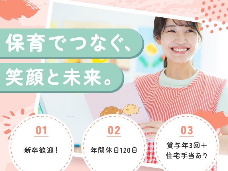【新卒歓迎】保育士免許取得見込みの方必見!完全週休2日制&年間休日120日 /賞与年3回!で給与4.4か月分支給/住宅手当あり!
