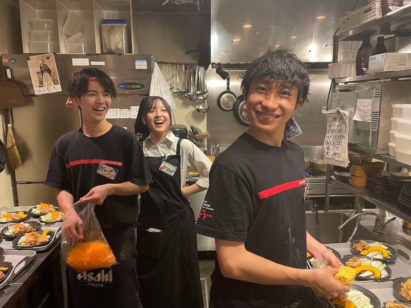 求めている人材 お料理・接客未経験OK 大学生・Wワーク歓迎・正社員候補も歓迎♪ 採用基準は「元気に明るくお客様へ対応できる」これだけです! 現在、新入生世代が多く活躍中! 授業や、新生活との調整などうまくやれるかな、、、と心配な方! そういう仲間がたくさんいる環境だからこそ、働きやすさも抜群です! 【ホールさん・キッチンさん】 ホールには女性スタッフが多く活躍、キッチン・パントリーには男性スタッフが多く活躍しています♪ 今回はホールさんが中心の募集になります♪ 【お店のメンバーについて】 18~22才の大学生がメイン(約9割)に活躍中^^ 特にこの時期は、進学が決まってアルバイト先も決めたいという「高校三年生」が多く仲間入りしてくれています♪ もちろん実際に働くのは新生活が始まってからでも大丈夫♪ 同年代の仲間が多く、仕事後にご飯を食べに行ったり、飲みに行ったり、楽しく働いています。