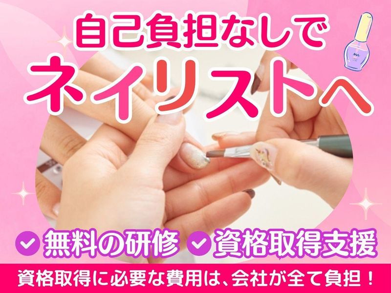 仕事内容 。・⁺ ⁺・ 。 ☆映える×手に職⇒将来安心のシゴト☆ ✊ずっと使える技術を身につけたい! でもお金と時間、資格や経験はゼロ… ₊.・⁺✧ そんなアナタにオススメ❗✧⁺・.₊ =☆「自己負担額ゼロ」で資格が取れる☆= 資格取得に必要な費用は、会社が全て負担! 無料研修、資格取得支援で最短2週間で ネイリストデビュー☆(給与天引きなし) =☆日本最大級のネイルサロンで活躍☆= 動画・SNSで話題になったお店! 頑張り次第でネイリストのインフルエンサー として輝けるチャンス多数あり! .˚♢⁺‧┈┈<✨お仕事内容✨>┈┈‧⁺ ♢˚. ✅ご予約受付 ✅ジェルネイル施術 ✅レジ会計 ✅お店のSNSに投稿 ✅あなた限定デザイン作成 など。 #サロンの見学もOK♪ ネイル経験ゼロでもぜんぜんOK! 「本気でネイリストやってみたいかも♡」 その気持ちがあれば大歓迎♪ スタートは研修からだから安心◎ 基礎からしっかり教えるので、 できることを少しずつ増やしていけます✧ 実際に、 未経験スタートから ネイリストデビューしている スタッフもたくさん♡ 今も楽しく続けている人が多いサロンです✨ ✧₊⁺✧₊⁺✧₊⁺✧₊⁺✧₊⁺✧₊⁺✧₊⁺✧₊⁺✧₊⁺✧₊⁺✧₊⁺ <✨『はあとねいる』をご紹介✨> 300種類以上のデザインと季節・地域限定の デザイン等をご用意しており、全て安心して 毎月通える“3500円の定額制”にてご提供。 さらに、ネイル施術を1時間ですべて完了! 日本最大級のネイルサロンづくりに あなたもチャレンジしてみませんか? ✧₊⁺✧₊⁺✧₊⁺✧₊⁺✧₊⁺✧₊⁺✧₊⁺✧₊⁺✧₊⁺✧₊⁺✧₊⁺ 一人ひとりが輝け、仲間と楽しめる場所! 楽しみながらやりがいもあり成長できる! そんな想いを一緒に共有できる方、 <はあと><思いやり>を大事にできる方 との出会いを楽しみにしています♪ ✧₊⁺✧₊⁺✧₊⁺✧₊⁺✧₊⁺✧₊⁺✧₊⁺✧₊⁺✧₊⁺✧₊⁺✧₊⁺