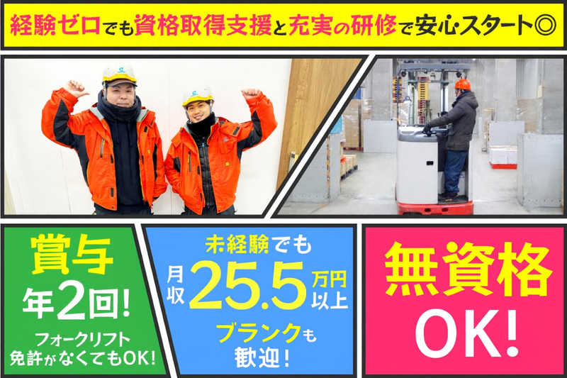 求めている人材 \ 未経験・無資格OK! / フォークリフト免許がない方も、 入社後の資格取得を しっかりサポートします! 大手研修センターで基礎から習えるため まったくの未経験でも 安心してデビューできます♪ \ こんな方にぴったり! / * 未経験から手に職をつけたい * 安定した給与&待遇で働きたい * 落ち着いた職場が好き * 中途でも馴染みやすい環境がいい * 長く働ける職場を探している - <歓迎資格> ✅フォークリフトの免許 <こんな方も大歓迎> ✅リーチフォークの業務経験豊富な方 ✅物流倉庫経験者歓迎 ✅倉庫内業務経験者歓迎 ✨学歴不問(中卒・高卒歓迎) ✨控えめネイル・ピアスOK ✨髪色・髪型自由 ✨タトゥーもOK - こんな経験が活かせます! - アルバイト、パート、契約社員、 正社員などの雇用形態に関わらず ピッキングや仕分け、梱包・包装、 品出し、検査・検品、組立など 物流倉庫内作業や軽作業スタッフの 経験がある方はスキルが活かせます。 その他、製造業や構内作業、 工場作業員・工場内作業の 経験をお持ちの方も大歓迎です! (*必須ではありません。) 年齢の条件と理由:あり(例外事由1号・60歳未満(定年のため))