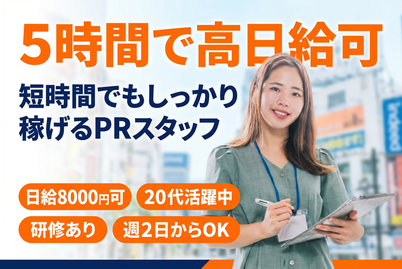PRスタッフ|短時間で稼げる|5hで日給8000円可|週2~