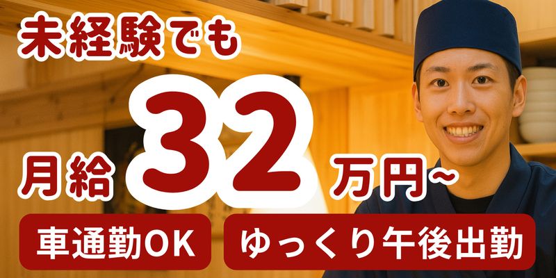 【応募資格】 ◇経験不問 ◇年齢不問 ◇性別不問 ◇資格不問 お寿司を握ったことがなくても、 飲食店勤務が初めの方でも、 社会人経験がなくても、 やる気があればOK!! 飲食店でキッチンの経験がある方は 最短2~3か月でお寿司を 提供できるようになります。 ✅こんな前職の先輩がいます!  ̄ ̄ ̄ ̄ ̄ ̄ ̄ ̄ ̄ ̄ ̄ ̄ ̄ ̄ 営業、保育、接客業、アパレル レストラン、ドライバー、工場勤務 一般事務、営業事務、不動産、現場監督 施工管理、カフェ店員、販売 小売業、美容部員、ブライダル 家電量販店、カラオケ店、コールセンター イタリアン、パン屋など ☞様々な経歴のスタッフが活躍中です! 【メリット】 #長期 #フリーター歓迎 #急募 #大量募集 #未経験者歓迎 #経験者歓迎 #有資格者歓迎 #社会保険完備 #研修あり #制服貸与 #賞与あり #ブランクOK #交通費支給 #U・Iターン歓迎 #昇給あり #第二新卒歓迎 #昇格あり #友達と応募OK #学歴不問 #新卒歓迎 #社割あり #車通勤OK