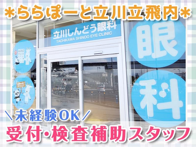 仕事内容 ~ららぽーと立川立飛内のクリニック~ 未経験から活躍できる医療のお仕事! 週2日程度~自分のペースで無理なく スタートできます♪ ◆お仕事内容◆―――――――――― 検査・検査補助業務や受付業務、 その他患者様のご案内や説明など 幅広くお任せしていきます。 患者様が来院された時に、 少しでも穏やか気分になれるよう 笑顔での対応や、丁寧にお話を聞き、 分かりやすい説明をお願いします! ☆キレイで広々とした院内で、 患者様の「目の健康」をサポートする やりがいのあるお仕事です! ――――――――――――――――― <★未経験の方も活躍できます★> 実際、今いる先輩スタッフのほとんどが 未経験からのスタートでした。 先輩スタッフが隣で一つ一つ丁寧に 教えていくので安心してください◎ まずは笑顔での対応から頑張って いきましょう! もちろん、医療業界での経験がある方は 即戦力としてご活躍頂ける環境です! <★働き方もご相談ください★> 週2日程度~、月8~10日の勤務で ご相談に応じています。 ご家庭やお子さんの予定に合わせた シフトで無理なく勤務できます◎ また、ピアス・髪型・髪色は 常識の範囲内であれば自由です! 自分のスタイルでお仕事できますよ♪ <★立川しんどう眼科について★> 勤務地は立川駅直結! ららぽーと立川立飛店内にある 眼科クリニックです。 場所柄もあり、小さなお子様から お年寄りまで、幅広い世代の方が ご来院されます☆ 周りには飲食店やショップがたくさん! 休憩中やお仕事後に食事やショッピング が楽しめますよ♪ ららぽーと内で使用可能な従業員割引も あり! ◇◇◇ここがポイント!◇◇◇ ・医療のお仕事デビュー大歓迎! ・週2日~自分のペースで働ける ・立川駅直結!通勤やお買物も便利♪
