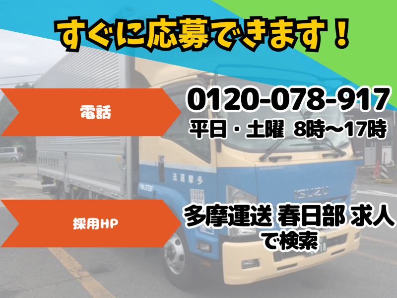 ✅ 手積み・手降ろし一切なし! ✅ 4tドライバーで高い給与水準を維持。 ✅ 退職金制度あり!将来も安心の正社員雇用。