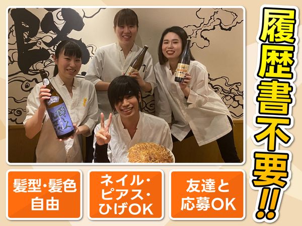 仕事内容 お客様のご案内・オーダー伺い・料理の提供・片付け・ドリンク作成・レジ業務など 社員さん・先輩スタッフと一緒に行っていただくので、業務未経験の方もご安心ください! ただ働くだけでなく、接客業務を楽しんでください♪ ❖**・・・**❖**・・・**❖**・・・**❖**・・・**❖ <こんな方も歓迎!> ・扶養内で働きたい方 ・バイトデビューや未経験者 ・人気店・おしゃれ居酒屋で働きたい方 ・ワイワイ楽しく働きたい方 ・学校と両立したい大学生 ❖**・・・**❖**・・・**❖**・・・**❖**・・・**❖ *お店について* 自家製の美味しさが凝縮された~ホルモン餃子~で乾杯! 牛ホルモンを混ぜこんだ特製餃子は食べ応え満点です。 他にも、初のタタキや和牛のたたき、牛モツ鍋といったお酒のアテにピッタリの料理も取り揃えています! 大宴会から小宴会、合コンやデートまで幅広く使って頂ける和モダン空間でゆったりお食事を楽しんでいただけます!