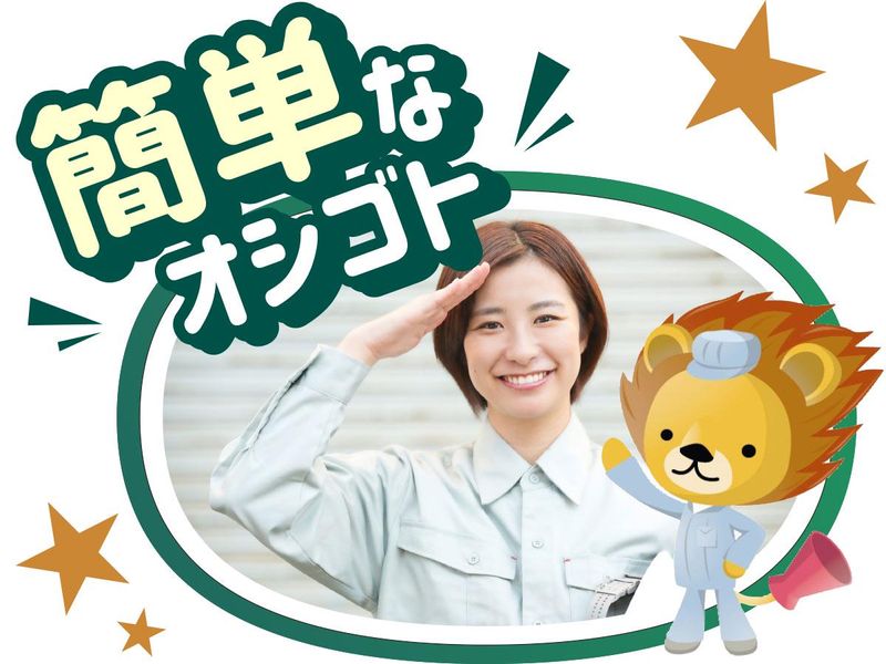 【保険制度】 雇用保険、労災保険、健康保険、厚生年金 待遇・福利厚生 【福利厚生】 ◆時間外勤務手当 ◆作業服貸与 ◆年末調整 ◆社会保険完備(法令) ◆定期健康診断受診制度 ◆交通費支給(規定あり) ◆キャリアアップ支援制度 ◆ストレスチェックの実施 ◆仮払い制度(規定あり) ◆食堂利用あり 【各種祝金(規定あり)】 ◆子ども手当 ◆結婚祝金 ◆出産祝金 ◆入学祝金 ◆退職金制度 ◆弔慰金 【休暇制度】 ◆有給休暇 ◆結婚休暇(規定あり) ◆忌引休暇(規定あり) - ◆全国約40,000 施設の宿泊施設を福利厚生価格で提供 ◆スポーツクラブ法人契約(全国7,700 ヶ所) ◆健康・メンタル相談サービス ◆育児休暇・補助金制度(月極・一時保育時の利用額に応じた補助金制度) ◆介護休暇・補助金制度(保険適用超過分の補助、用品購入に対する補助金制度) ◆無料e ラーニング完備(約1,100 講座) ◆コミュニケーション施策(全国30,000 店舗以上の飲食店が最大半額利用可能) ◆リフレッシュ施策(マッサージ、エステ、日帰り温泉などを福利厚生価格で提供) ◆物品購入割引制度(家電・食料品・消耗品等が社販価格で購入可能) ◆余暇支援施策(映画館・レジャー施設等を福利厚生価格で提供) - 【サポート体制もバッチリ】 *エリアごとに営業スタッフを配置! 仕事のご紹介からアフターフォロー まで担当します。 *安心して始められるよう 入社初日は必ず担当が同行します。 *困ったことがあれば何でも お気軽にご相談ください♪ 【当社について】 未経験でもチャレンジできる 工場での軽作業を中心に、 大手優良企業のお仕事を多数ご紹介中。 下記すべての認定企業なので、 どなたも安心してご就業いただけます。 *優良派遣事業者 *製造請負優良適正事業者 *派遣検定合格者所属 【ほかにもお仕事多数】 「土日休みや土日祝休みがいい」 「平日のみで年間休日120日以上」 「簡単軽作業でオープニングがいい」 など、稼ぎ方や働き方は相談OK! ピッタリの仕事がきっと見つかります。