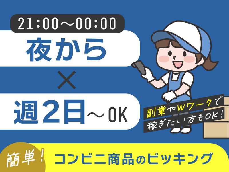 仕事内容 \ 嬉しいメリット盛りだくさん♪ / ★1日3hのみの短時間&週2日~OK! ★両立しやすい「21時スタート」 ★即日からのスタートもOK! ★軽作業デビューさんも大歓迎♪ ★20代~50代の男女ともに活躍中! ――――――――――――――――――― Q ⇒ お任せするお仕事は・・・? A ⇒ 1kg未満の軽い商品を 【 見つけ出す 】 ↓ 【 集めていく 】 簡単なピッキング作業です♪ << もっと分かりやすくご紹介 >> 【1】パネルに商品が表示される ▼ 【2】指定の数だけ商品をピッキング ▼ これを繰り返していくだけ♪ Q ⇒ 扱う商品は・・・? A ⇒ 飲料などコンビニでよく見かける 商品ばかりです♪ (冷蔵・常温どちらもお任せ!) ★お仕事の流れは1つずつ丁寧に 説明するので未経験でも安心◎ ★バイトデビューさんも大歓迎♪ ★未経験の方でも、 すぐに覚えられる簡単作業です!