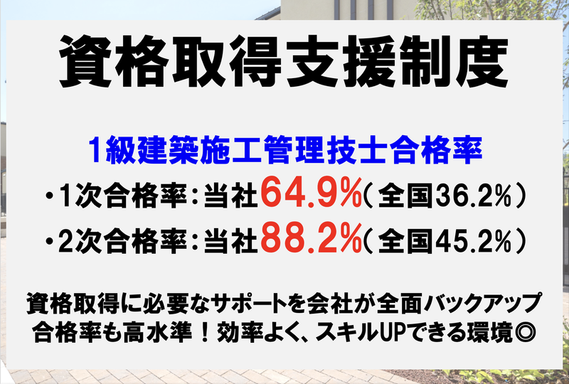 求めている人材 ★30〜50代が多数在籍しています 【必須】 ・高卒以上 ・建築施工管理経験(工法問わず) ・2級建築施工管理技士または2級建築士の資格 【歓迎】 ・木造の施工管理経験 ・1級建築施工管理技士または1級建築士の資格 ー 入社のキッカケや決め手、求職者に伝えたいことを聞きました! ーvー <Y.Tさん> 役職:施工管理 年齢:31歳 在籍年数:2年目 前職:地場ゼネコン 青森出身なのですが、都会に憧れ入社した前職のゼネコンはとにかく残業が長いし、 みなし残業だったので給与も低くて、、Uターンで地元に帰りたくもないし、 とにかく現状を打破したくていろんな会社を見ていた時に惹かれたのが当社でした。 評価体制や給与体制が透明化されている点はもちろんのこと、 残業管理もしっかりされているので、前職の残業平均75h→35hと約半分になりました! 今までは長い残業で家には寝に帰る毎日でしたが、今ではジムに週3、4回行ったりゆとりもできたので、 将来のため、前向きに1級建築士資格取得のための勉強も始めました。 今までのことを考えると、本当に人生が豊かになったなぁと感じています。 <F.Sさん> 役職:所長 年齢:36歳 在籍年数:7年目 前職:地場ゼネコン 前職は40、50代の先輩・上司が多い環境でした。 同年代がいない環境の中で、硬直した階層構造より、 よりフラットで風通しの良い環境への転職を求めて当社に入社しました。 グループとして様々な事業展開を行なっており、横とのつながりを重要視しているので、 定期的にグループ間での食事会や運動会などイベントが多数あります。 同年代も多くおり、上下関係もフランクなので、双方の視点から意見交換をすることも多々あります。 例えば、CAM内の建設的な視座を超えて、 ピタットハウスの売り手側に顧客のニーズや最近の流行について意見を聞いた上で、 建設の方向性を模索・検討する事ができる点は魅力です。 それに若手にチャンスが多い職場なので、私も入社し3つ目の現場を担当する4年目には所長に昇格しました。 裁量も持てるし、直接オーナーとのやりとりなので量産型の建設というよりは、 創造性や自由度の高い建物を建設できるので非常に満足しています。