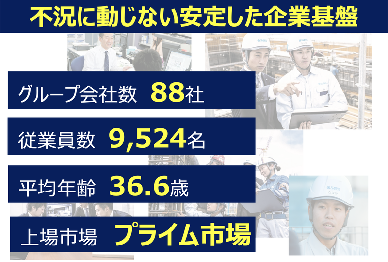 仕事内容 <オススメPOINT!> ◎東証プライム上場企業のスターツグループならではの安定基盤 ◎年間休日123日+完全週休2日制 ◎働きやすさと 充実した福利厚生で入社定着率90% ◎30代で所長クラスが8割! ◎スキルアップのため、豊富な研修をご用意 ◎扶養しているお子さんにつき エンゼル手当を支給! 月々の支給以外にも 入園や卒業などのライフイベント時には 10万円の支給も(規定あり) まだ、資格をお持ちでないあなたも安心してください! \\*1級建築施工管理技士の合格率*// ・1次合格率:当社64.9%(全国36.2%) ・2次合格率:当社88.2%(全国45.2%) →資格取得に必要なサポートを会社が全面バックアップしているので、 合格率も高水準!効率よく、スキルUPできる環境◎ 【スターツの特徴】 https://www.starts.co.jp/recruit/cam-technical-job-lp/ 土地活用提案〜設計、施工にとどまらず、 管理・運営までをグループ一貫で行なっているので 無理な工期やコストでの受注が少なく 技術者が施工に集中できる環境を 整えることができています。 こんな面も: 施工だと構造とのやり取りが多く発生! 外注の場合だと、ここの修正に2・3日はかかるところ、 弊社は構造設計も意匠設計も自社完結のため、 よりスムーズに対応が可能に♪ 社風: グループ間の横との繋がりを重要視する当社では、 様々な社内イベントを開催しています。 中でも、スターツスポーツフェスティバルは、 グループ一丸となって3000人があつまる大運動会! 体を動かして、美味しいご飯を食べて、 新しい輪がそこから生まれ仕事に繋がることも◎ こんな取り組みも: ・19時PC強制ログオフ! ・アニバーサリー休暇で 誕生日や記念日にお休みを取れる制度 ・社員のキャリアアップを積極的に支援 職種別の研修を通して 実践的なスキルを学ぶ機会や マネジメント研修を活用し 必要なスキルを習得することも可能! 施工管理のスペシャリストとして工法変更や より大型の物件への挑戦もできます。 若手でも所長を経験するチャンスがあるので、 意欲次第で早期キャリアアップも狙えます。 【BIM内製化90%】 BIMとは? https://www.starts-cam.co.jp/service/design/bim/ 業界に先駆けて、BIMを本格的に導入。 当社のBIM-FMプラットフォームでは、AIと連携し 最適な投資判断や事業計画が瞬時に行われます。 最新技術の活用により、品質を向上させつつ 工数の削減に成功しています。 【仕事内容】 お客様からご依頼いただいた、 オーダーメイドの建築物の施工管理をお任せ。 あなたには以下のような業務を担当いただきます。 ・現場責任者として現場の統括や進捗状況を管理 ・協力会社と連携し スムーズな工事・進行をサポート ・若手の指導や育成にも携わります オーナーとの直接やりとりなので、 直に要望や提案をすることも可能です! また現場で発生した変更点などについても、 早期対応が期待できるため 工期の遅延を防ぎやすいのが魅力。 まずはOJTなどを通して 現場に慣れていただければと思います。 【対象物件】 低層高級レジデンス、賃貸メゾネット、物販店舗などの商業施設、 保育施設、高齢者介施設など多数 【プロジェクト例】 ・MACHI家シリーズ ・秘密基地WOOD ・ゲーテッドハウス グッドデザイン賞を受賞した、 9階建ての免震集合住宅やモクビル南葛西 など 【工法】 木造2×4工法を主体としながら、当社特許の免震技術を用いる場合も。 その他木造・RCハイブリッドなど環境配慮型建築にも力を入れています。 【工事規模】 規模:5000万円〜1億、1億〜3億、3億〜9億 ※担当案件の規模はこれまでのご経験や希望に応じて担当いただきます ※基本工期は階数+3ヶ月程度(免震の場合は+1ヶ月)