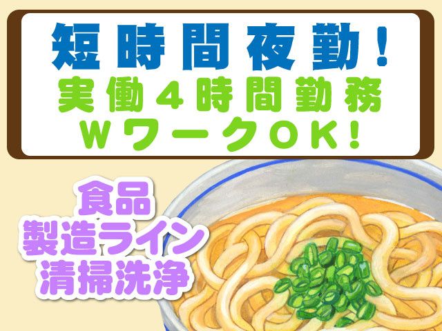 仕事内容 食品製造ラインの清掃や洗浄などの軽作業です。 工場や倉庫での経験のない未経験の方でも 安心して働く事が出来ますよ こちらのお仕事は夜勤専属の2.5時間~3時間程度の 業務になりますので学生さんやWワークでお小遣いを稼ぎたい方 にもピッタリの内容です! 新オフィス開設に伴い、 派遣オープニングスタッフ大量募集中! 派遣スタッフさんへのフォローや サポートには自信があります。 新しい環境でスタートしませんか。 ◎男性・女性活躍中の長期に働けるお仕事です。 ◎20代・30代・40代・50代活躍中の職場です。 ◎未経験でも親切丁寧に教えます。 もちろん経験者も大歓迎。 ◎土日休みなので、趣味もプライベートも 満喫できます。 ◎工場見学もOK! まずは、職場を見てみよう! ◎キレイで冷暖房完備の快適な職場です。 ◎元飲食業・元サービス業・元運転手・ 元営業職・元事務職など、異業種からの 転職もお気軽にご相談ください。 ◎現在、正社員やパートアルバイトで 働いている方、派遣という働き方にも メリットはたくさんあります。 一度、考えてみませんか。 ◎安心の大手企業のお仕事も多数あります。 ◎電話でのリモート面接もOK ◎WワークOK、副業OK エヌ・オー・エーはスタッフを大切しています! →バースデープチプレゼントあり 【ハローワークへの求人掲載について】 弊社の求人はハローワークに掲載していない案件もございます。 (ハローワーク求人掲載は期間が経つと自動的に掲載が止まるため) ハローワーク経由でお仕事を探している方もお気軽にお問い合わせください。 「エヌオーエーは案件多数!」 他にもまだまだお仕事あります! ぜひお問い合わせください。
