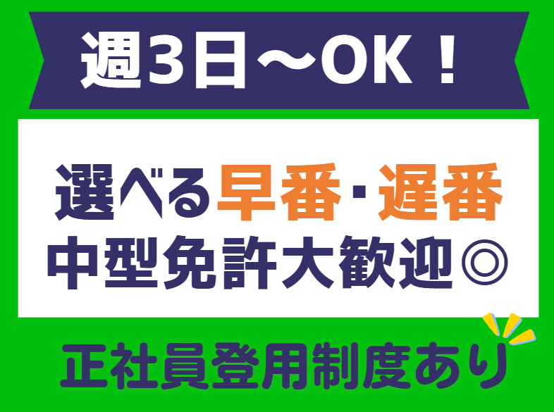 普免があればOK!中型歓迎!週3~選べる勤務時間◎祝金&賞与