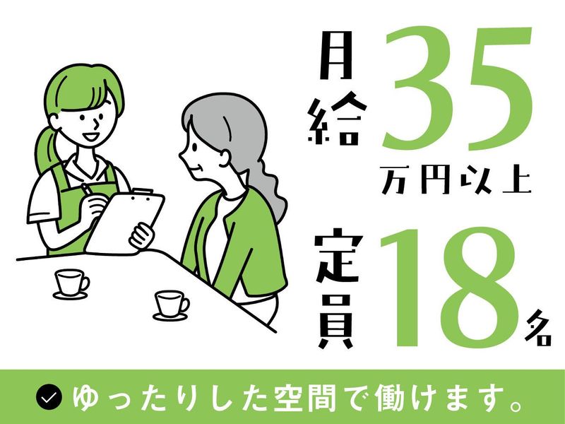 仕事内容 ✨月給35万円~ ✨訪問なし ✨入居者18名を丁寧にサポート <仕事内容> ✅入居者様のお困りごとのヒアリング・状況確認 ✅入居者様に必要な介護サービスを考えて、ケアプランの作成 ✅ケアプランを関係者(介護士や看護師)に共有 ✅ご家族様のご対応 利用者様と向き合える全18室の少人数制で、「ほっこり」な雰囲気が魅力◎ 利用者の方が自分らしい生活を送れるようにサポートする、介護のプロフェッショナルなお仕事です。 ✨働きやすい環境 先輩スタッフが一から丁寧にお仕事をお伝えするのでご安心ください♪ 服装も自由で、かっちりとした雰囲気ではないので、肩の力を抜いて落ちついてお仕事できることや、 グループホームでしっかりとした基盤があること、連携がしっかり取れることも働きやすさの理由の1つです♪ 資格取得支援制度もある為、働きながらスキルアップも可能です! ✨スタッフさんにインタビュー! 「利用者様とスタッフ同士が仲良く、なによりスタッフさんが利用者様の「1番の味方」で寄り添っている関係性や、 働く人が素敵な方ばかりなことが続ける理由です! その他にも、家庭の事情に合わせて働き方を相談した際も、 柔軟に対応して下さったりなど、私達スタッフの働き方も大事に考えてくれるところが凄くいいなと思います♪」 働きやすさや温かい人間環境で過ごせる事も施設の魅力です♪ ✨採用について/代表 私がこの業界に足を踏み入れたのは30歳を過ぎてからでした。初めは全くの未経験で戸惑う事も多々ありましたが、 そんな中でも1番楽しかった時間は利用者様と「今日は何を食べようかな~」と他愛もない話をしているときでした! ちょっとした冗談で笑いあって、いいことがあると報告したくなる、家族のようなほっこりした時間。 もちろんお仕事だからこそ、関係に甘えるわけではありませんが、利用者様にとっては「第二の家」であり、 日常生活を一緒に過ごす私たちヘルパーは家族の一員でもあり、一番の味方でいたいと思っています。 喜んでいる姿を見るとこちらも自然と嬉しくなったり、もっと力になりたい!と思えたり。 利用者様にもスタッフさんにも、そんな温かい気持ちでほっこりとした時間を過ごして頂けると嬉しいです♪ 採用は経験や資格は関係なく、人柄重視でそんな想いに共感して下さる方に来て頂けると嬉しいです。