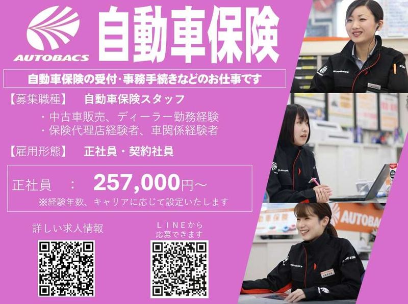 【スーパーオートバックスSAPPORO】業務拡大|未経験・無資格OK|資格取得支援|自動車保険アドバイザー|正社員|充実待遇|転職応援