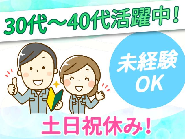 【土日祝休み&高時給1,250円】 製造業未経験でもすぐに活躍できます! 30代~40代活躍中!