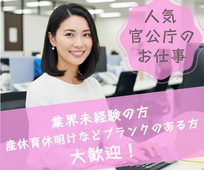 仕事内容 【仕事内容】 【流山市役所での介護保険に関わる一般事務】 介護保険に係わる事務のお仕事です。 窓口対応のご経験者大歓迎です♪ <具体的な仕事内容> ◎窓口対応 介護保険に関する申請に来られた方の受付 ◎書類発送作業 準備した資料などの書類や通知書の発送手配など ◎書類確認業務 書類に不備がないか確認 ◎データ入力業務 書類の内容を所定のフォーマットへ入力 ◎資料作成 会議に必要な資料の作成など 【アピールポイント】 介護保険に関わる事務のお仕事です。生活に役立つ知識も身に付きます! 未経験でも事前研修やOJT教育などでしっかりサポートしますので、ご安心ください。 <オススメポイント> ◎完全週休2日X土日祝♪ ◎未経験でも研修などでしっかりサポート ◎残業少なめで家庭と両立のしやすい環境 ◎主婦・主夫の方やブランクがある方も歓迎! ◎自転車通勤OK! <正社員(エリア職)での勤務> 転居を伴う転勤はありません。 「地元で長く勤めたい」「家庭の事情で遠方への異動はできない」 そんな方々に向けた地域限定の雇用形態です。一般職・総合職などへのステップアップも可能♪ <職場環境> 【就業人数】9名【年代】20代~50代 【男女比率】女性90% 産前産後休暇・育児休暇の取得や復職の実績もあり、ライフステージが変わってもずっと続けられるよう、働きやすい職場環境作りを心がけています! 皆様のご応募をお待ちしております。 【勤務地について】 流山市役所 ※就業場所は当社請負先です
