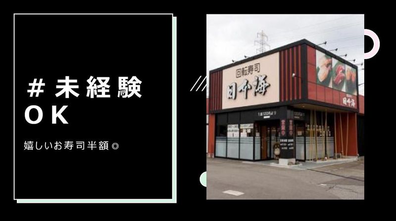 仕事内容 *‥‥*主婦・主夫さんが活躍中!*‥‥* ⏩主婦・主夫さん 家事の合間を活用して土日の ランチタイムに1日4時間でお仕事! プライベートを大切にしながら、 家計のプラスに♪ *‥‥*‥‥*‥‥*‥‥*‥‥*‥‥* ▽ ▽ ▽ ▽ ▽ *…・―――――――――――――・…* ⭐\\ この求人のポイント //⭐ ✨ 未経験OK◎丁寧な指導で安心♪ ✨ バイトデビューも歓迎! ✨ 絶品まかないあり!持ち帰りもOK◎ ✨ 従業員割引でお寿司は半額に! ✨ 平日のみ・土日のみの勤務もOK! *…・―――――――――――――・…* ▼∴▼∴▼∴▼∴▼∴▼∴▼∴▼∴▼∴▼∴ ――――――――――――――――――― ⭐ 今回募集するお仕事は…  ̄ ̄Ⅴ ̄ ̄ ̄ ̄ ̄ ̄ ̄ ̄ ̄ ̄ ̄ ̄ ̄ ̄ ̄ ̄ 回転寿司日本海にて 店舗スタッフを募集します! ▼∴▼∴▼∴▼∴▼∴▼∴▼∴▼∴▼∴▼∴ ――――――――――――――――――― ⭐ 具体的なお仕事内容は…  ̄ ̄Ⅴ ̄ ̄ ̄ ̄ ̄ ̄ ̄ ̄ ̄ ̄ ̄ ̄ ̄ ̄ ̄ ̄ ✅ホール業務 └ 機械を使用してお皿の枚数チェック └ テーブル片付け・セッティング └ レジ業務 └ サイドメニュー配膳 など ✅調理補助業務 └ 機械を使用して軍艦寿司の製造 └ 洗い場作業 など ホール業務と調理補助業務の 両方を担当していただきます。 *・。。・'・。。・'・。。・'・。。・'・。。・'・。。・。。・'・。。・* まずは笑顔で元気に「いらっしゃいませ!」 とお客様をお迎えできれば大丈夫です♪ 明るい対応で接客をお願いします! 調理補助作業は「料理が好き!」という方や 細かい作業が得意な方にぴったりです◎ ▼∴▼∴▼∴▼∴▼∴▼∴▼∴▼∴▼∴▼∴ ――――――――――――――――――― ⭐ 未経験でも安心の環境◎  ̄ ̄Ⅴ ̄ ̄ ̄ ̄ ̄ ̄ ̄ ̄ ̄ ̄ ̄ ̄ ̄ ̄ ̄ ̄ \✨未経験でも安心してスタート✨/ 平日の落ち着いた時間帯に、基礎から ステップアップ形式で指導いたします。 「飲食業界は初めてで…」という方や 「今回が初めてのアルバイトで緊張する」 という方も心配はご無用です! \✨2週間の丁寧な研修あり✨/ 最初の1週間は、先輩スタッフが マンツーマンでお皿の数え方や レジ操作などを教えます。 2週目から、簡単な調理補助にも挑戦! あなたのペースに合わせて進めるので、 焦らず仕事を覚えられますよ。 ▼∴▼∴▼∴▼∴▼∴▼∴▼∴▼∴▼∴▼∴ ――――――――――――――――――― ⭐ あなたに合わせた働き方でOK!  ̄ ̄Ⅴ ̄ ̄ ̄ ̄ ̄ ̄ ̄ ̄ ̄ ̄ ̄ ̄ ̄ ̄ ̄ ̄ 週単位でシフトを組んでいます。 予定が立てやすく、無理なくプライベートと 両立できる環境ですよ◎ < こんな方が活躍中! > ⏩フリーターさん 土日は1日8時間でがっつりお仕事! 平日夜も入って週5日勤務。 ▼∴▼∴▼∴▼∴▼∴▼∴▼∴▼∴▼∴▼∴ ――――――――――――――――――― ⭐ とある1日の流れ(ランチタイムの場合)  ̄ ̄Ⅴ ̄ ̄ ̄ ̄ ̄ ̄ ̄ ̄ ̄ ̄ ̄ ̄ ̄ ̄ ̄ ̄ 10:00 出勤・開店準備 11:00 お客様のお出迎え、ホール業務 12:00 ピークタイム! チームで協力して対応 13:00 洗い場や簡単な調理補助 14:00 退勤!お疲れ様でした♪ ▼∴▼∴▼∴▼∴▼∴▼∴▼∴▼∴▼∴▼∴ ――――――――――――――――――― ⭐ 当店について  ̄ ̄Ⅴ ̄ ̄ ̄ ̄ ̄ ̄ ̄ ̄ ̄ ̄ ̄ ̄ ̄ ̄ ̄ ̄ 長年にわたり、お客様に上質なお寿司と 心温まるひとときを提供してまいりました。 働くスタッフ同士が支え合い、 温かな職場環境を大切にしています。 *・。。・'・。。・'・。。・'・。。・'・。。・'・。。・。。・'・。。・* 仕事で頑張った後には、 職人さんが握る美味しいお寿司の まかないが待っています。 家に持って帰ることもできるので、 「家族も喜んでいる」と 話しているスタッフもいます♪ *・。。・'・。。・'・。。・'・。。・'・。。・'・。。・。。・'・。。・*