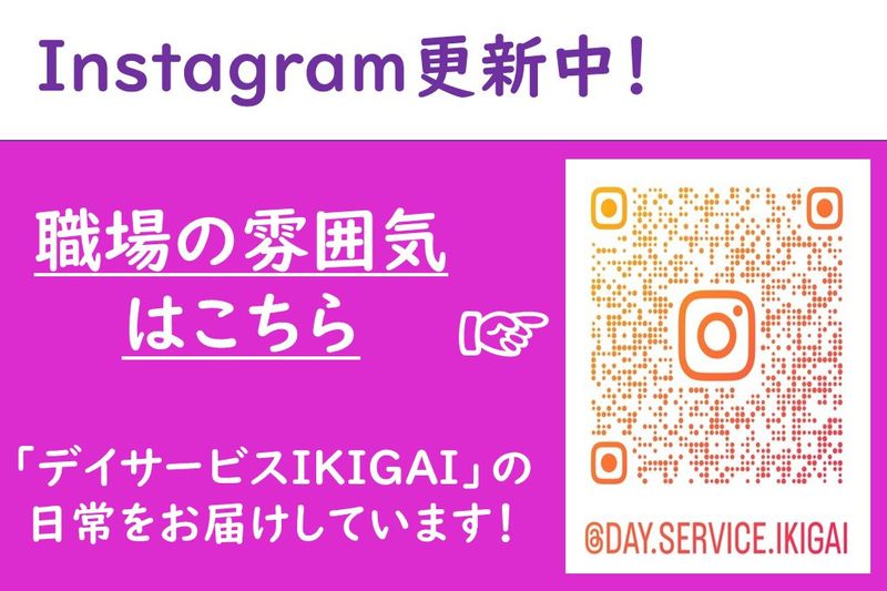 【仕事内容】 週1日からOK!WワークもOK!未経験OK!パートの介護職員を募集! 現場に追われる毎日ではなく、日々のやりがいを感じながらご利用者様のやりたいことを「IKIGAI」で一緒に全力で応援しませんか。 「未経験の方でも大歓迎です!」 現在、介護未経験の方が大活躍中です! 丁寧にフォローしながらお教えしますのではじめて介護にチャレンジする方も安心してご応募くださいね。 ■ポイント! 家庭の両立やプライベートの充実しながら一緒に働きませんか? ・お子さんを連れての出勤もOK ・シフトは週1日~5日まで希望相談OK ・WワークもOK ・日勤のみ ■具体的な仕事内容 ・ご利用者様のリハビリ補助 ・身体介護(見守り、移動・入浴・排泄介助) ・送迎 など ※ご利用者様は平均介護度1~2の自立度の高い方が多いです。 ・昼食は美味しいお弁当での提供 ・入浴も見守りメインのサポート ●異業種からの転職の方も大歓迎! 現在、活躍中のメンバーも「アパレル業界、美容業界、保育士、カフェ店員、サービス業、接客業、販売業など」からの転職です。 ●快適な職場環境! 週1日~5日まで希望のシフトOK!残業少な目なのでプライベート充実!年末年始は連休! ●笑顔で溢れた空間! 自立度が高めのご利用者様が多く笑い声の絶えない施設です!『いつもありがとう』『あなたと話せるのが楽しい』と言って貰える最高の仕事です! IKIGAIは、「いくつになっても目標に向かって頑張れる場所!」をコンセプトにご利用者様が笑顔になれる生活リハビリを提供しています。 インスタグラムで最新情報を発信しています。「デイサービスIKIGAI」で検索してみてくださいね! いきなりのご応募が不安な方は、まずは施設見学やお問合せだけでもOKです! お気軽にご連絡くださいね。 ご応募・お電話お待ちしております。 【求人ID-IKG01】