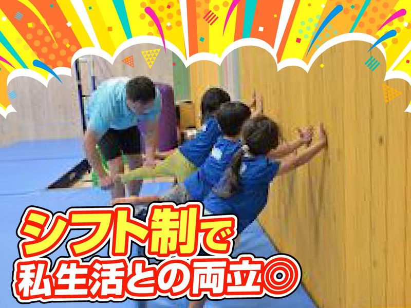 仕事内容 子供の成長をサポート・見守る体操教室のスタッフを募集します! ◎体操の知識や技術などはなくても大丈夫です 幼児から小学生までを対象に、学校体育の延長として子供たちが楽しみながら成長できる体操教室になります。 └マット運動・マット・跳び箱・鉄棒・トランポリンなど様々な運動を実施 体操指導の研修があるため、未経験の方も安心して始められる体制を整えています。 最初からいきなり一人でのお任せはしません。 まずはサポートコーチから開始するので、先輩スタッフのそばで学ぶことができます。 ★子供が好きな方 ★体を動かすのが好きな方 ★未経験からコーチを目指したい方 ★明るく楽しく仕事をしたい方 など大歓迎です! できなかったことができるようになったり、 そんな子供たちの成長を一緒に肌で感じられるやりがいのあるお仕事です。