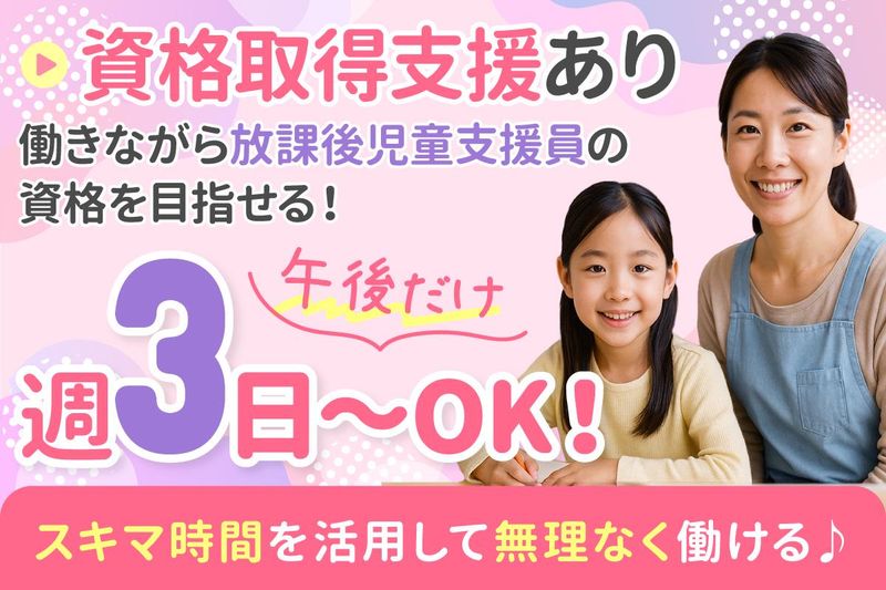 仕事内容 ✨土日は休みだから家庭と両立可 ✨ ✨ 平日だけ働きたい方、大歓迎 ✨ ✅水+月~金内で週3日~OK ✅未経験スタート・ブランクOK✨ ✅13:15~18:15の短時間勤務 ✅家庭と両立する主婦(夫)さん活躍中 ✅フリーター活躍中♪ ✅資格支援で放課後児童支援員も取得可 ✅20~60代まで幅広い世代が活躍中 ****************************** 品川区の放課後児童クラブ 「すまいるスクール」にて、 子どもたちの見守りを行う 学童保育スタッフを募集します! 具体的には・・・ ◆遊びの提案 ◆おやつ時間の対応 ◆保護者対応(お迎え時など) ◆施設の環境整備 ◆イベント運営 << 施設利用者について >> 小学1年生~6年生で、 1日あたり50~70人ほど。 子どもの自主性を尊重するため、 常に指示を出すのではなく、 見守りが中心です。 << 1日の仕事の流れ/例 >> ■13:15 出勤・施設MTG 当日の運営スケジュール確認や、 前日までの子どもたちの様子を、 出勤している全員で共有します。 ■14:00 下校開始・受付業務 来館した子どもたちの 帰宅時間の申告受付をします。 校庭や室内スペースでの遊び、 学校の宿題をするなどして過ごします。 スタッフは一緒に遊んだり、 積極的にコミュニケーションを 取りながら、子どもたちが 安全に過ごせるよう配慮します。 ■17:00 間食 17時以降に残る子どもたちは 間食・おやつの時間があります。 配布や見守りを担当します。 ■18:00~18:15 児童帰宅 18時以降は延長保育となり 保護者様のお迎えがあります。 ****************************** ▶▶▶ ”平日だけ” 週3日~OK 勤務は水+月~金内で週3日~OK! 「平日だけ働きたい」 「家事や育児と両立したい」 そんな方にピッタリです。 土日休みで、家族との時間や プライベートも大切にできますよ♪ 残業がほぼないので、 仕事帰りにお迎えやお買い物も可能です♪ ▶▶▶ 未経験スタートのメンバーが活躍中 特別なスキル・経験は必要ありません◎ 実際に職場では、未経験スタートの 20代~50代が活躍しており ・家庭と両立中の主婦さん ・Wワーカーさん ・副業で収入アップを狙う方 …などさまざまな立場の方がいます! あたたかいメンバーが揃っているので お互いにサポートし合いながら 和やかな雰囲気の中で 楽しく働いていますよ♪ ▶▶▶ 資格取得支援・正社員登用あり 「放課後児童支援員」の取得を 目指している方にもオススメです。 勤務時間内に、絵本の読み聞かせ研修や 放課後児童支援員資格研修を受講可◎ 放課後児童支援員だけでなく、 保育士や幼稚園教諭、教員を 志している方にも最適な環境です♪ また、将来的には正社員への道も。 長く安定して働きたいという 思いにも寄り添います。